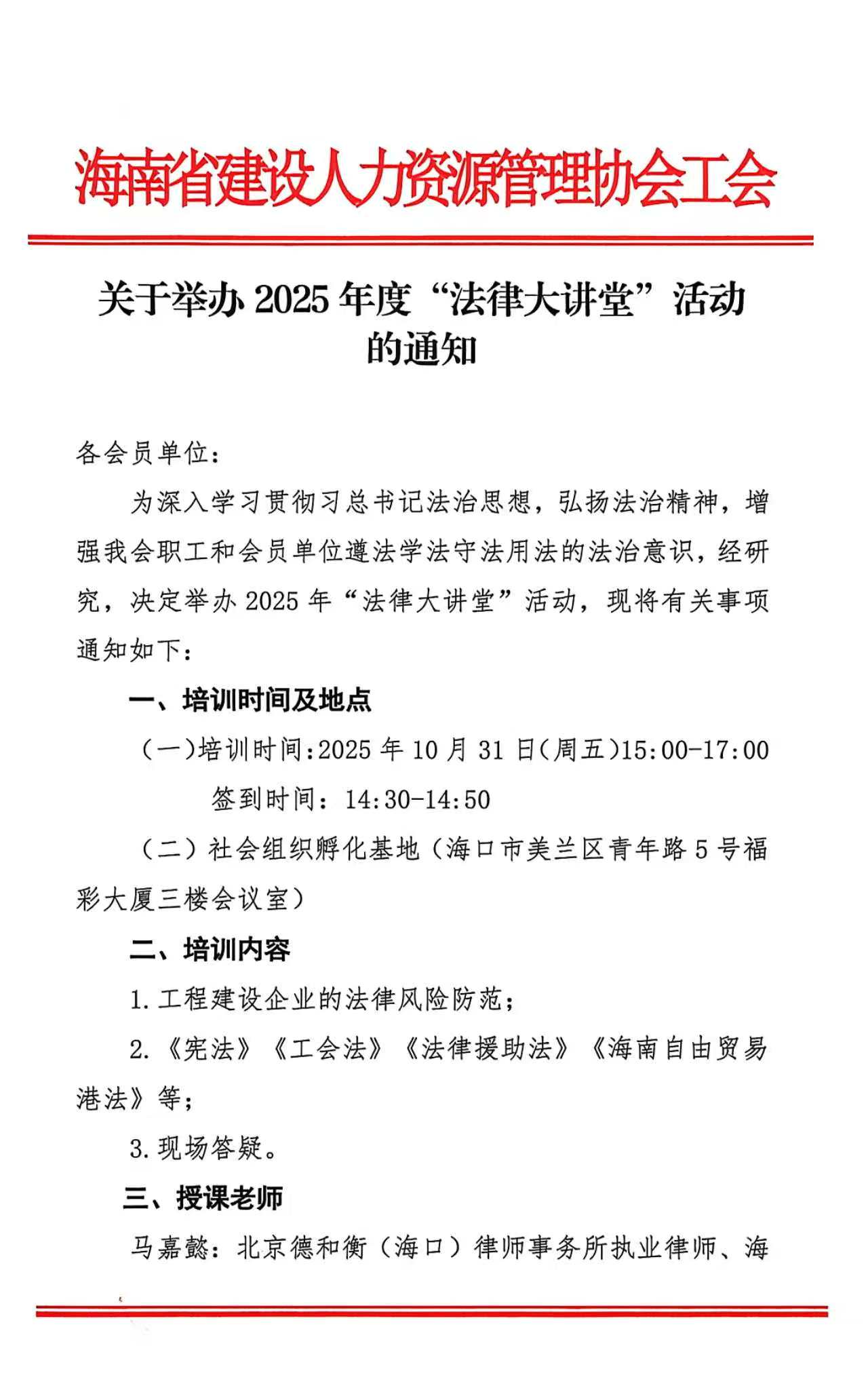 关于举办2025年度“法律大讲堂”活动的通知