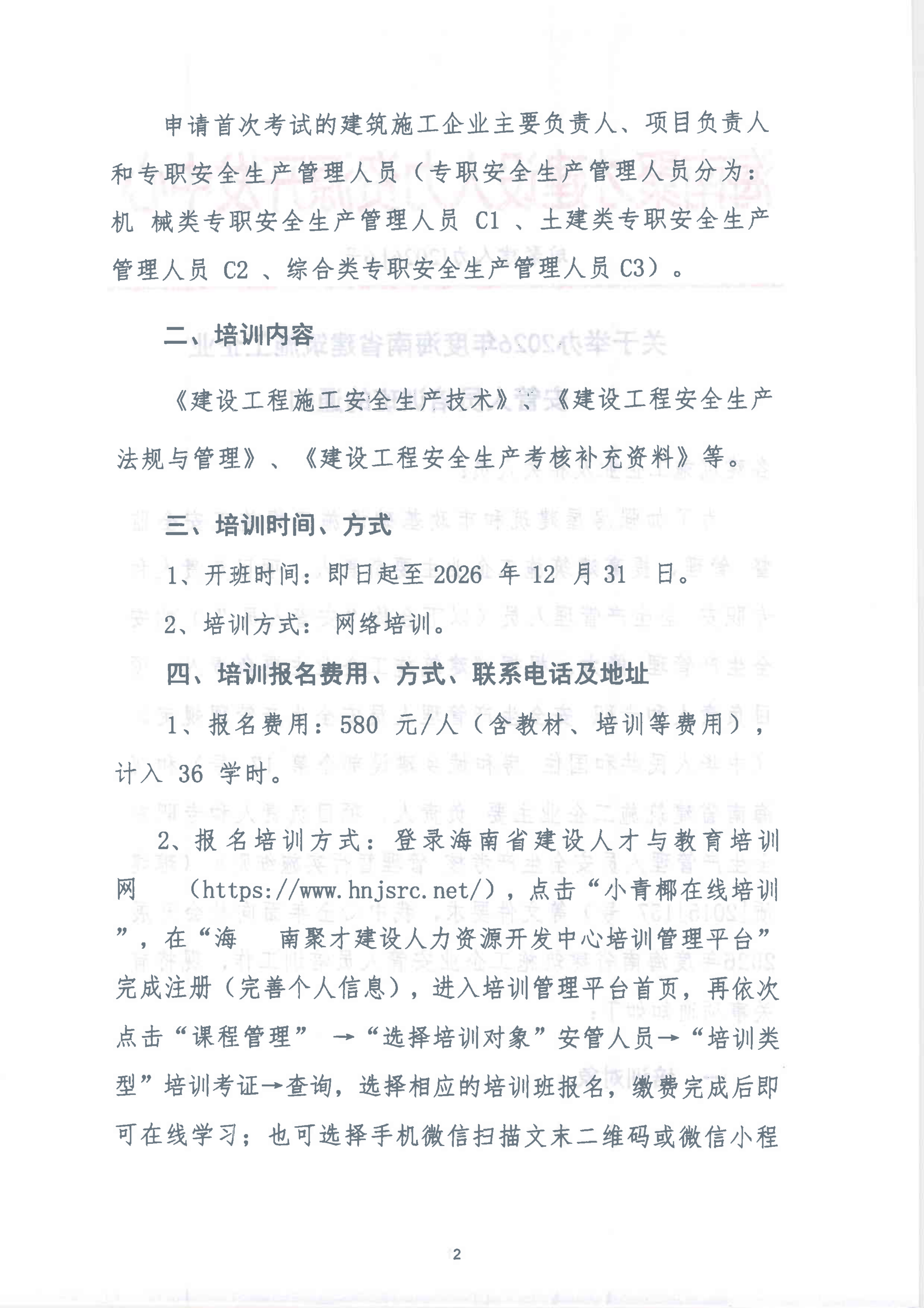 关于举办2026年度海南省建筑施工企业安管人员培训班的通知