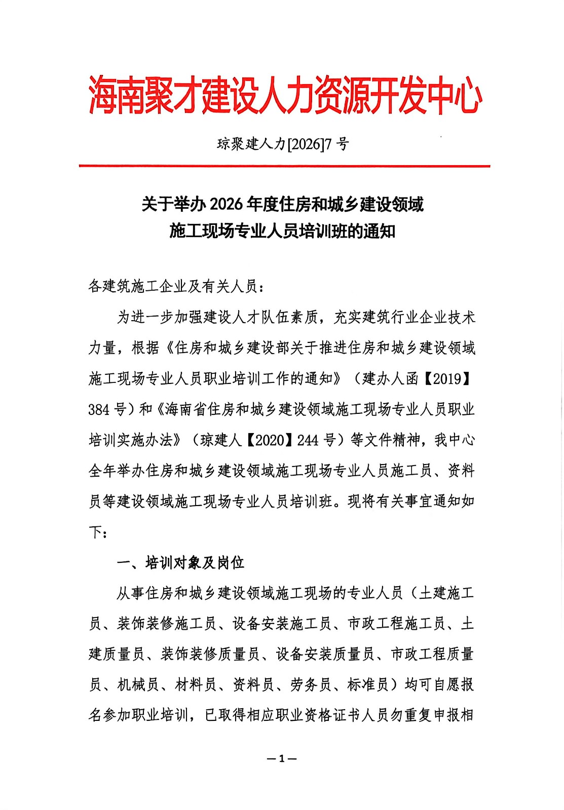 下一篇: 关于举办2026年度海南省建筑施工企业安管人员培训班的通知