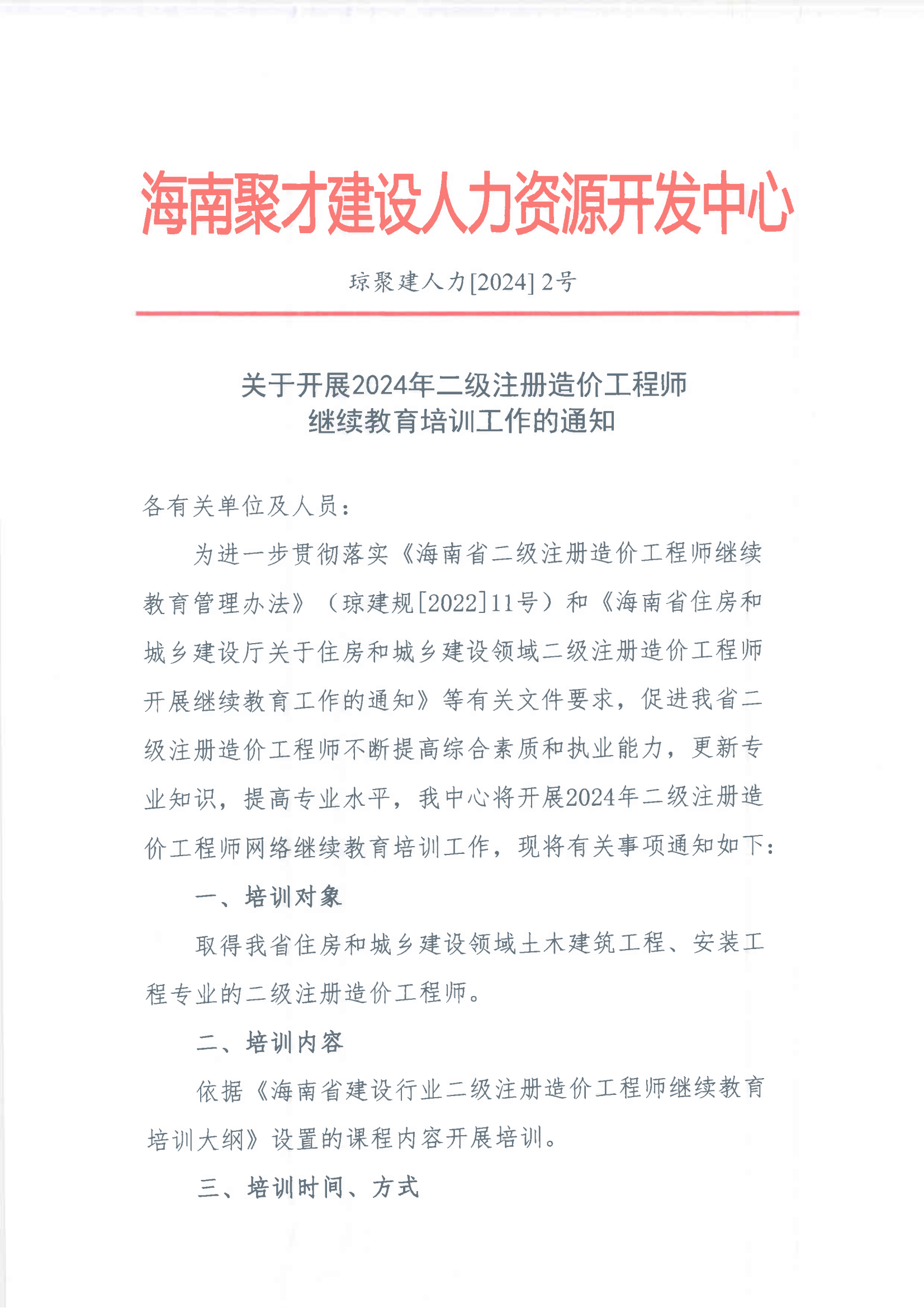2024年二级注册造价工程师继续教育培训工作的通知