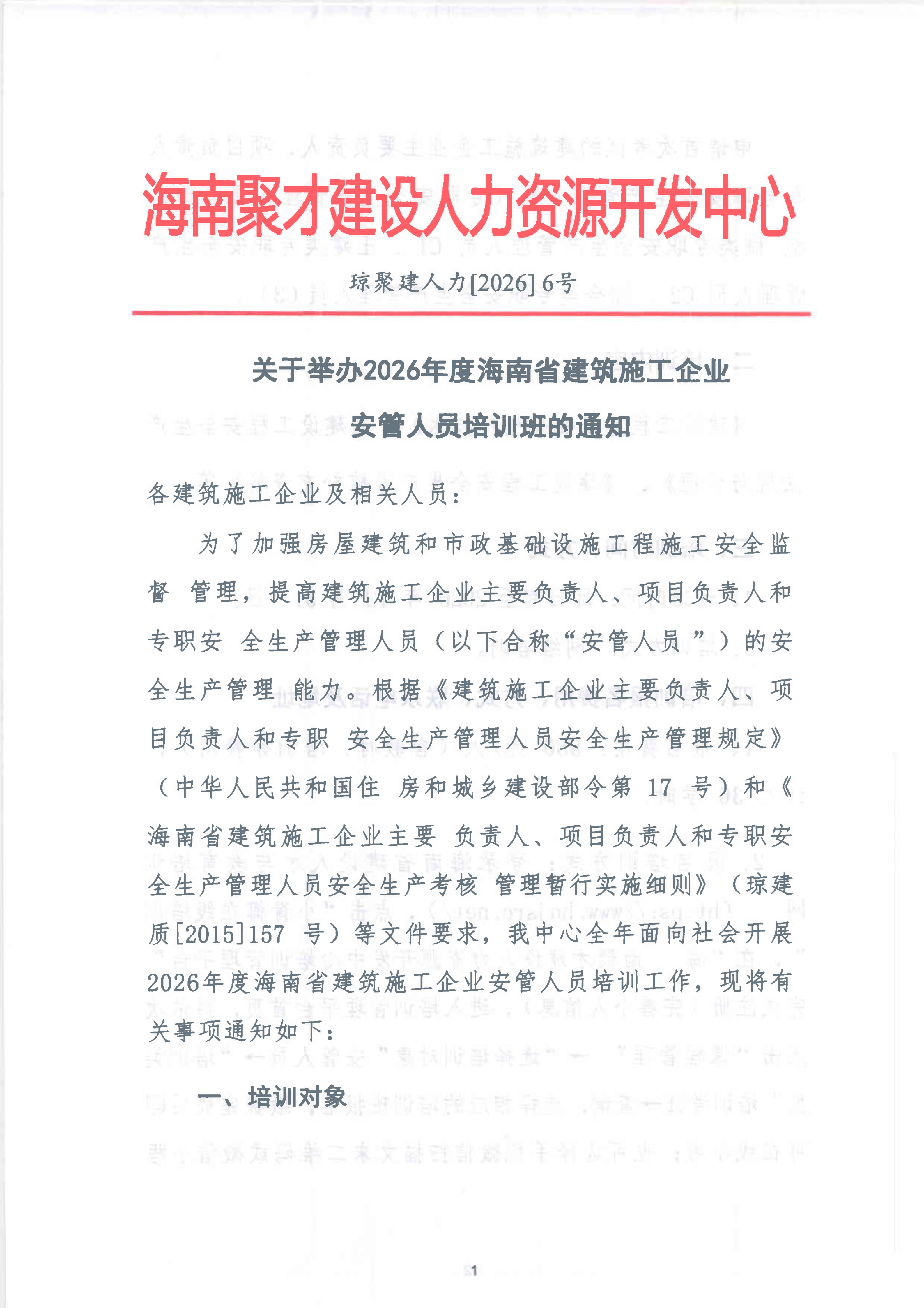 关于举办2026年度海南省建筑施工企业安管人员培训班的通知